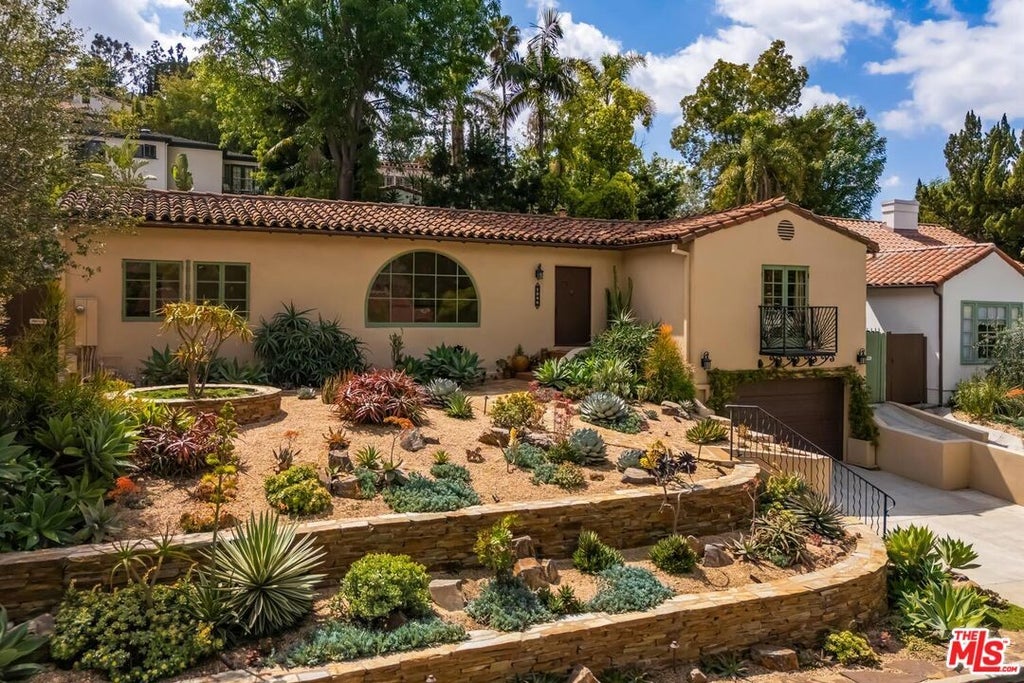Located in highly sought-after Lake Hollywood Knolls, this vintage 1929 Spanish home has been meticulously remodeled with attention to detail. From the moment you arrive, the curb appeal is stunning, with a thoughtfully designed and abundant display of drought-tolerant and low-maintenance landscaping. A custom wrought-iron balcony and handrail accent the front. Entering the home, you are greeted by arched entryways, rich hardwood floors, and gorgeous ceiling beams. There's a charming decorative fireplace with a wood mantle and French-style doors with custom hardware. There are also vintage-style push-button lighting switches throughout. The beautiful arched windows are the room's centerpiece. The spacious dining room can accommodate a large dinner party or intimate dining. The kitchen is a study in design and elegance with ample cabinetry, accent lighting, Viking range, large double door Kitchen Aid refrigerator, lovely black stone countertops, stained glass window accents, and attractive tile backsplash with custom trim inserts. The primary bedroom enjoys a custom wrought-iron balcony. There is a stunning full bath with beautifully preserved vintage tile. The guest bedroom has attractive doors that provide a view and lead to the lovely courtyard. An additional bedroom with a three-quarter bath is also suitable for an office or den. The courtyard is the perfect place for entertaining or relaxing. It is private, serene, and lovely. Truly an exceptional and well-maintained home in every detail. It is a fantastic location, only five minutes from Ralphs, Von's Whole Foods, Trader Joe's, restaurants, the Lake, hiking trails to the Hollywood Sign, Wisdom Tree, and the Hollywood Bowl.